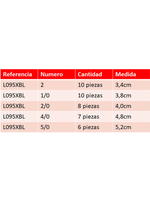 Medida1/0, 2, 2/0, 4/0, 5/0