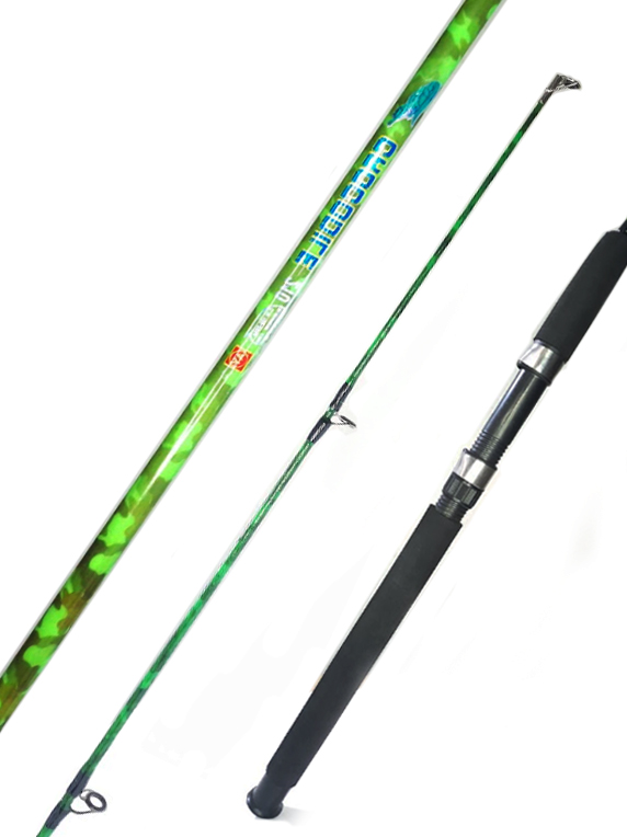 La caña Crocodile camuflada es una opción resistente y económica, ideal para pescadores que buscan una vara fuerte para pesca variada.