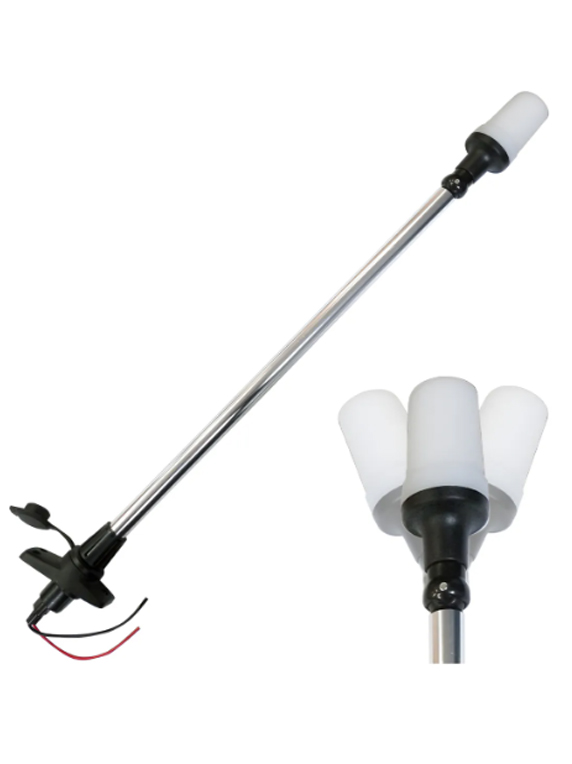 El mástil desmontable con luz y base es un accesorio náutico práctico y esencial que mejora la seguridad y visibilidad de la embarcación, fácil de instalar y transportar, ideal para una navegación más segura.