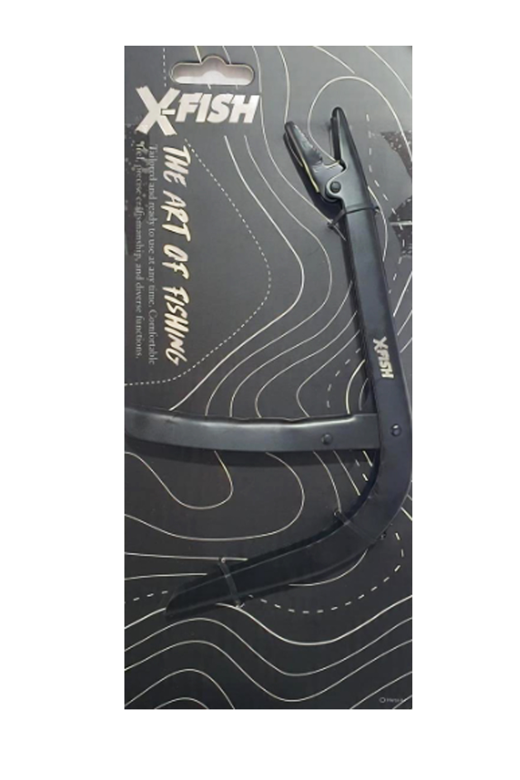 Pinza saca anzuelo negra de gran tamaño, robusta y segura, pensada para pescadores que buscan mayor alcance y control al retirar anzuelos.