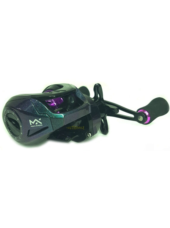 El Reel Baitcasting Max E-Xtreme combina ligereza y potencia en un diseño moderno y atractivo.