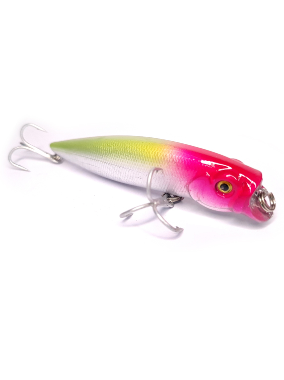 Es un señuelo que se puede usar como popper con movimientos erráticos o minnow hasta 1m de profundidad a tracción continua o stickeandolo.